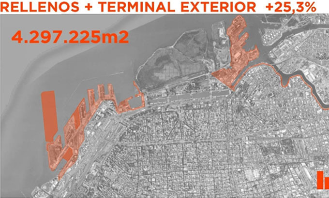 Espigón, conformándose en consecuencia una nueva superficie destinada a actividades logísticas y futura terminal de cargas